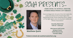 From Novel to Netflix: Writing Stories Hollywood Can’t Resist The luck of the Irish meets the pulse-pounding world of espionage when bestselling thriller author Matthew Quirk, creator of The Night Agent, joins the Southern California Writers’ Association! From the high-stakes intrigue that turned his novel The Night Agent into a global hit, to the cinematic tension … Read more